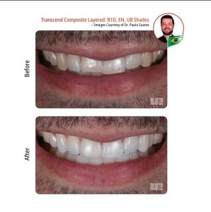 بطور مثال کامپوزیت ترنسند اولترادنت شید B1D برای لایه دنتین بکار میرود ( فقط یکی از موارد )